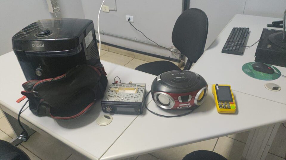 No local, os agentes encontraram vários objetos separados e prontos para serem levados, entre eles um filtro de água, um rádio portátil, uma máquina de cartão e um aparelho de som automotivo. Todos os itens foram restituídos à vítima.