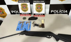 Durante a ação, os policiais encontraram também uma arma de fogo sem registro, munições de uso permitido e uma espingarda aparentemente de pressão. O suspeito de 48 anos, foi preso em flagrante pelo crime de posse de arma de fogo de uso permitido. A fiança foi arbitrada e recolhida, de modo que ele responderá em liberdade.