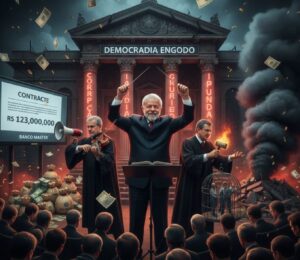 Nessa regência, os escândalos financeiros deixam de ser anomalias para se tornarem o combustível da máquina. A conivência de Lula é o que permite que diálogos sobre o Banco Master circulem livremente entre o Banco Central e o Judiciário, culminando no acinte ético de um contrato de 123 milhões de reais com a esposa do Ministro. Para o maestro, pouco importa o conflito de interesses, desde que os capitais amigos continuem lubrificando as engrenagens do apoio político.