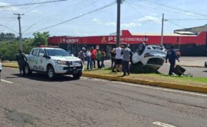 Uma colisão traseira resultou no capotamento de um veículo na Avenida Juscelino Kubitschek de Oliveira, no jardim Jequitibás, em Presidente Prudente (SP), na tarde desta quarta-feira (10).
