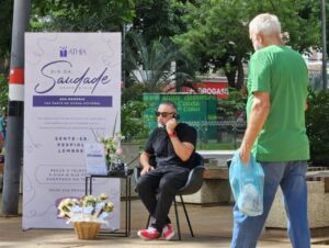 A iniciativa convidou o público a deixar mensagens de saudade para entes queridos que já partiram. Durante a ação, também foram entregues rosas como gesto simbólico de carinho e lembrança, além de palavras de apoio aos participantes que aceitaram refletir sobre o significado da data.