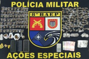 A ação do BAEP, realizada no bairro Parque dos Pinheiros, onde o suspeito foi abordado pelos agentes depois de dispensar drogas. O trabalho levou os policiais a três diferentes endereços, onde foram apreendidos 1,1 kg de maconha, além de porções de crack e materiais para embalar os entorpecentes.