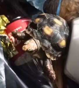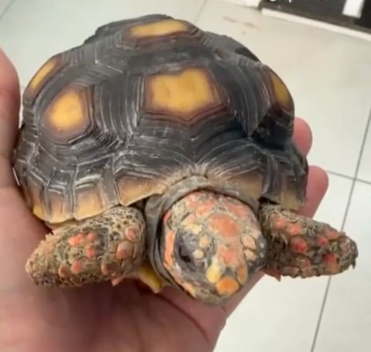 Um filhote de jabuti-piranga (Chelonoidis carbonaria), espécie da fauna silvestre brasileira, foi resgatado após ser descartado ilegalmente dentro de um saco de lixo, em uma situação que poderia ter terminado de forma trágica em um condomínio de Presidente Prudente (SP).