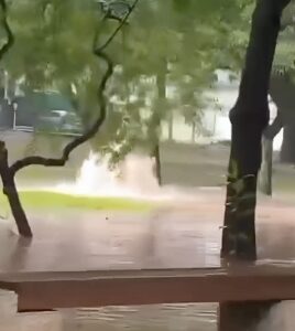 Motoristas que passavam pelo local registraram, o início da chuva e a forte correnteza que se formou sobre as tubulações do canteiro central. Em poucos minutos, a água avançou, obrigando condutores a reduzirem a velocidade e trafegarem com cautela.