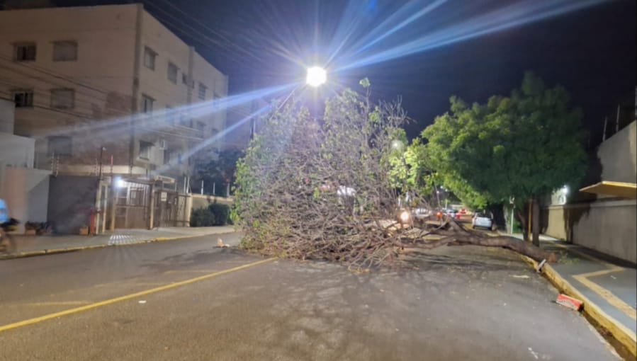 Uma forte ventania atingiu Presidente Prudente na noite desta sexta-feira (17), por volta das 20h30, provocando a queda de uma árvore na Rua Dr. Cyro Bueno, nas proximidades do Hospital Iamada.