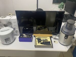 Durante a ocorrência, uma segunda vítima, de 37 anos, se aproximou da viatura policial e informou que sua residência havia sido alvo de furto em novembro de 2025. Ela apontou o casal como suspeito. Após vistoria no imóvel, os policiais localizaram diversos objetos que foram prontamente reconhecidos pela vítima, entre eles uma televisão de 32 polegadas, batedeira, espremedor de frutas, panela elétrica e outros utensílios domésticos.