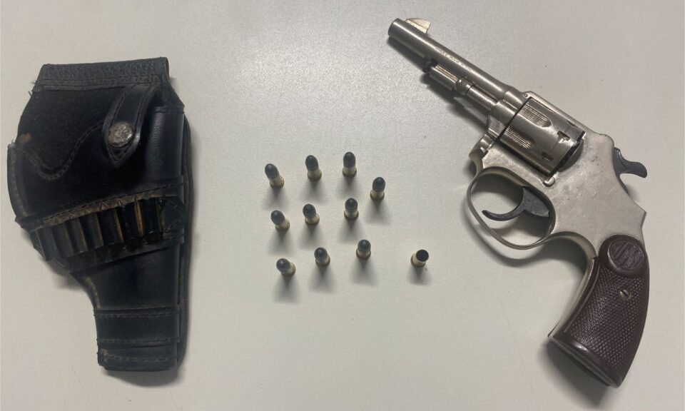 Durante a abordagem, os policiais viram o condutor arremessar um objeto ao chão. Ao verificarem, constataram que se tratava de um revólver calibre .22, da marca Rossi, municiado com seis cartuchos intactos e um já deflagrado, além de outras munições armazenadas em um coldre.