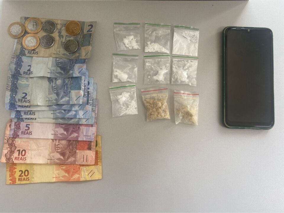 Durante a busca pessoal, o homem ainda revelou que escondia mais drogas dentro do tênis. Os policiais localizaram duas porções de crack, totalizando 7,38 gramas da substância, além de R$ 51,75 em cédulas de pequeno valor e um aparelho celular.