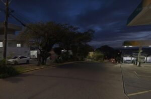 De acordo com informações da Polícia Militar, equipes realizavam patrulhamento ostensivo quando receberam denúncias de que um indivíduo estaria armado em via pública. O suspeito, que usava camiseta vermelha, chegou a dispensar a arma ao perceber a aproximação policial, retornando momentos depois para recuperá-la antes de fugir do local.