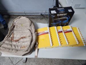 Durante a averiguação, representantes das lojas relataram que a mulher havia praticado furtos tanto na farmácia quanto em uma outra loja no centro da cidade na loja. Entre os objetos subtraídos estavam: uma mochila infantil, avaliada em R$ 289,99; cinco cadernos, avaliados em R$ 199,95; um secador de cabelos da marca Taiff, avaliado em R$ 419,90. Todos os itens foram recuperados.
