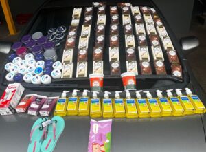 Entre os itens recuperados estavam 50 caixas de chocolates Ferrero Rocher, cremes e hidratantes das marcas Nivea e Eudora, sabonetes Granado, além de manteigas Aviação, leite Tirol e outros produtos. O valor total estimado do material furtado ultrapassa R$ 2 mil.
