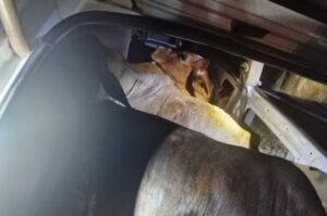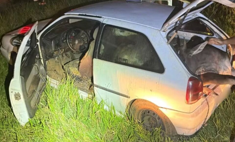 No interior do automóvel estavam dois indivíduos, porém um deles fugiu a pé e não foi localizado naquele momento. Durante a revista pessoal, nada de ilícito foi encontrado com os abordados. No entanto, ao vistoriar o veículo, os policiais localizaram quatro animais bovinos, sendo três vivos e um já morto.