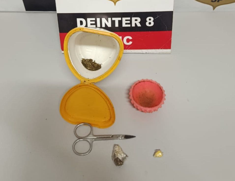 No momento da abordagem, o suspeito estava sentado no calçamento do imóvel ao lado de outro homem, de 22 anos, que se apresentou como usuário de drogas e afirmou estar no local para consumir maconha. Durante as buscas, os policiais localizaram um pote contendo duas porções de maconha — uma embalada e outra sem embalagem — além de um comprimido de ecstasy. O investigado alegou que os entorpecentes seriam destinados ao consumo próprio.
