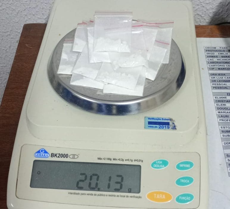 Ao todo, foram apreendidos 19 papelotes de cocaína, que somaram cerca de 20 gramas, além de um celular e materiais utilizados no preparo e armazenamento da droga. Segundo a polícia, o suspeito informou que realizava as vendas principalmente por meio de transferências via PIX.