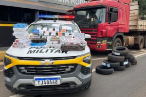 Durante a fiscalização, os policiais encontraram diversos aparelhos celulares, eletrônicos, pneus, cigarros, medicamentos para emagrecimento e anabolizantes, escondidos tanto na cabine quanto no compartimento de carga do veículo. O valor estimado das mercadorias apreendidas é de aproximadamente R$ 294.039.