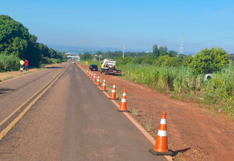 De acordo com as informações, a equipe foi acionada durante a “Operação Tiradentes-26” para atender a ocorrência envolvendo um veículo Toyota/Corolla. Por motivos que ainda serão apurados, o condutor perdeu o controle da direção, atropelou duas mulheres que caminhavam pelo acostamento e, em seguida, o carro capotou, parando no gramado às margens da via.