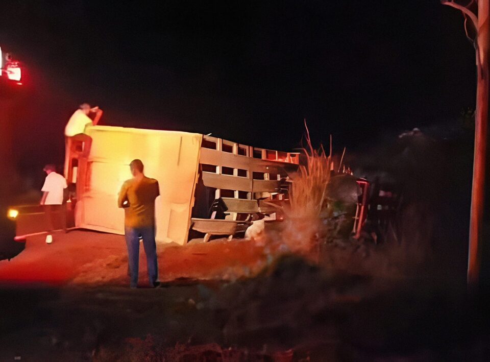 Segundo a Policia, o condutor trafegava no sentido urbano–rural quando avistou os animais atravessando a rodovia. Diante do risco iminente de colisão, ele tentou desviar, porém acabou perdendo o controle da direção. A carreta saiu da pista e tombou às margens da via, espalhando parte da carga e bloqueando parcialmente o tráfego até a remoção do veículo.