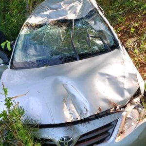 O motorista perdeu o controle da direção, o carro saiu da pista e capotou na encosta ao lado da rodovia. Foto: Redes Sociais
