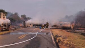 Motorista morre carbonizado após tombamento e incêndio de carreta