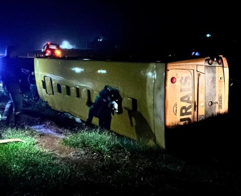 Ônibus com trabalhadores rurais tomba em Marabá Paulista e deixa um morto